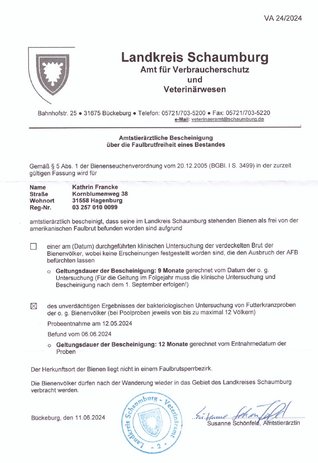 An dieser Stelle veröffentlichen wir Berichte über Untersuchungen, die wir regelmäßig durchführen lassen (Futterkranzproben zur Untersuchung auf Amerikanische Faulbrut und Honiganalysen)